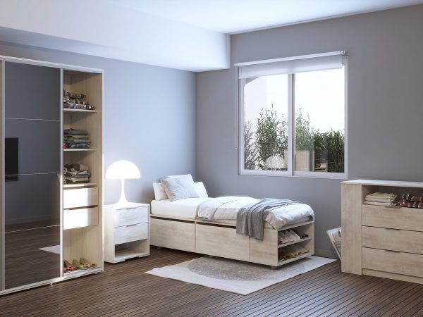 BOX CAJÓN DE 2 PL CON 4 PUERTAS BASCU Y 6 EST PIECERA. DELOS – DLD07
