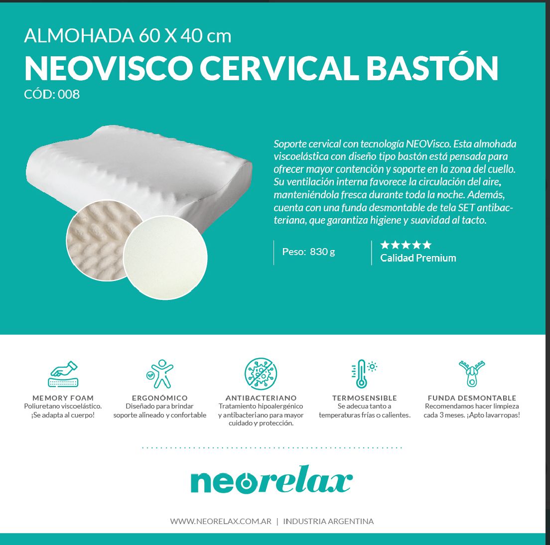 Almohada Neorelax Cervical Baston 60 cm x 40 cm