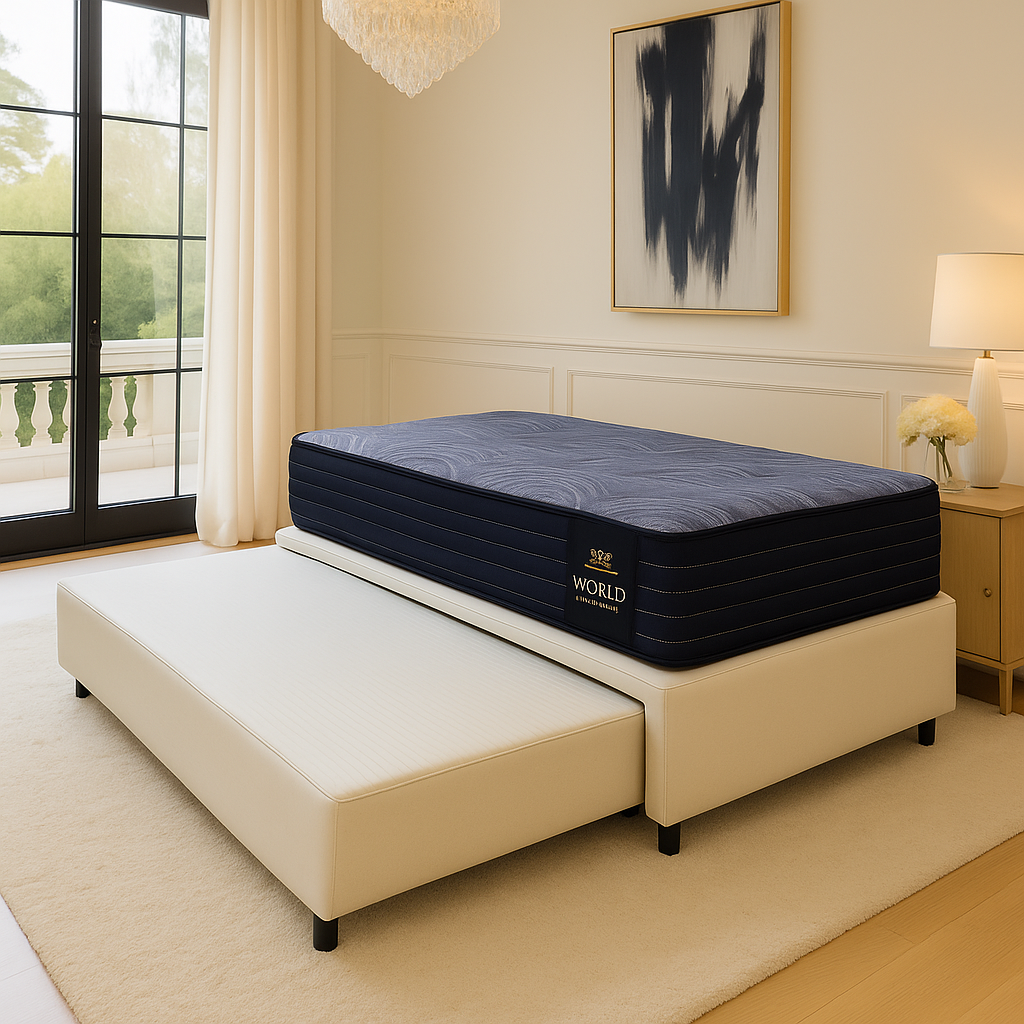 Una mezcla de espumas firmes con un toque de espumas soft. Ideal para quienes prefieren rigidez sin perder la sensación de suavidad de las telas de algodón.