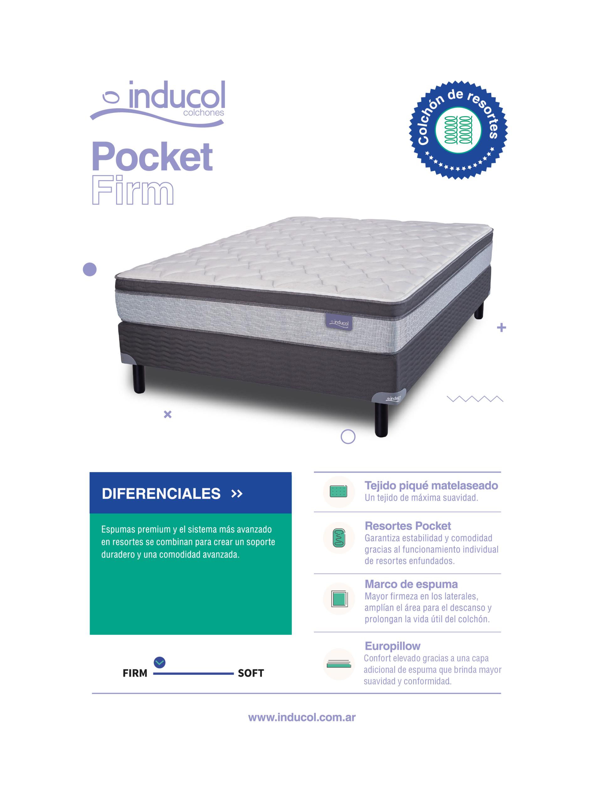 RESORTES POCKET: Cilíndricos embolsados en tela, garantizando silencio y suavidad.