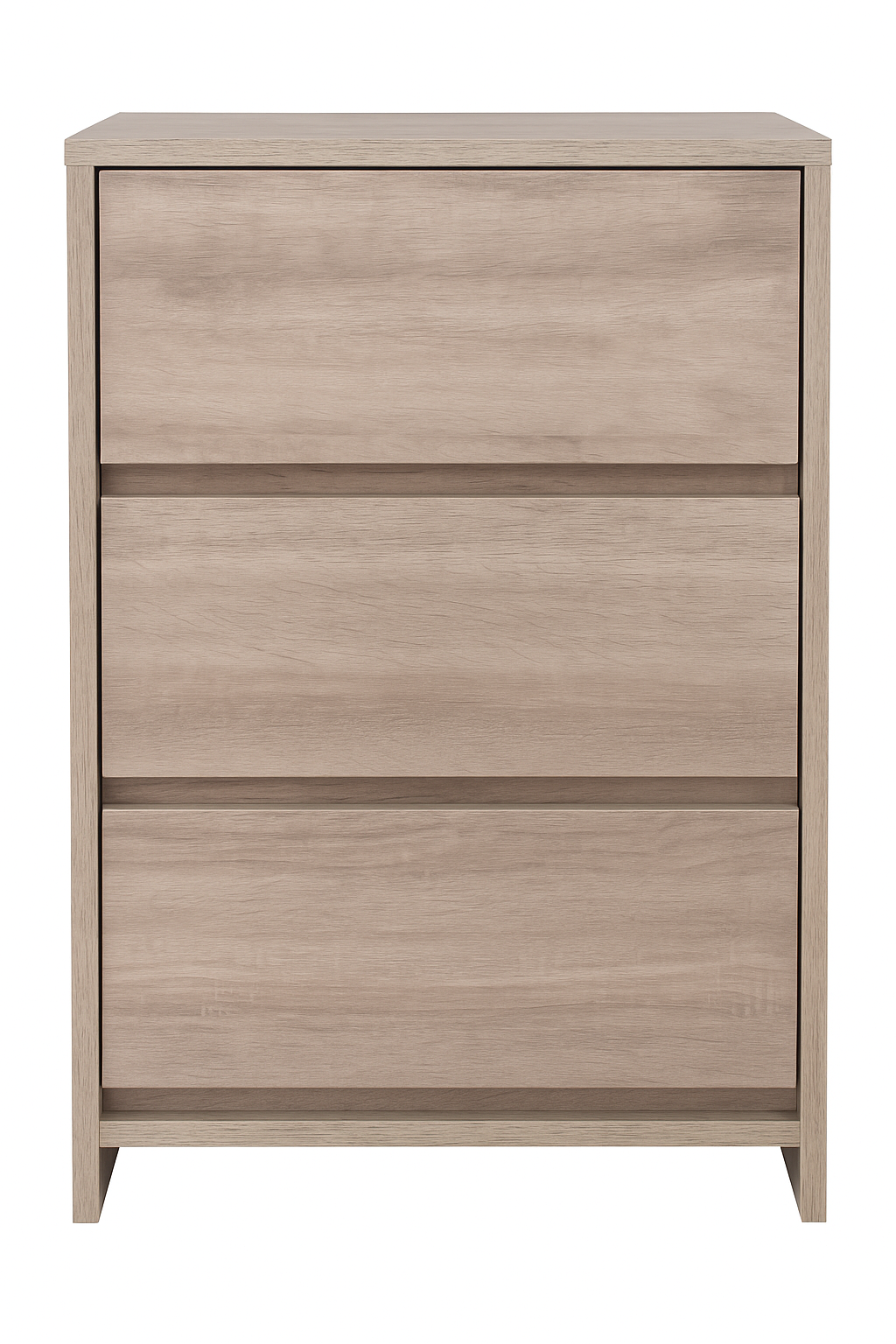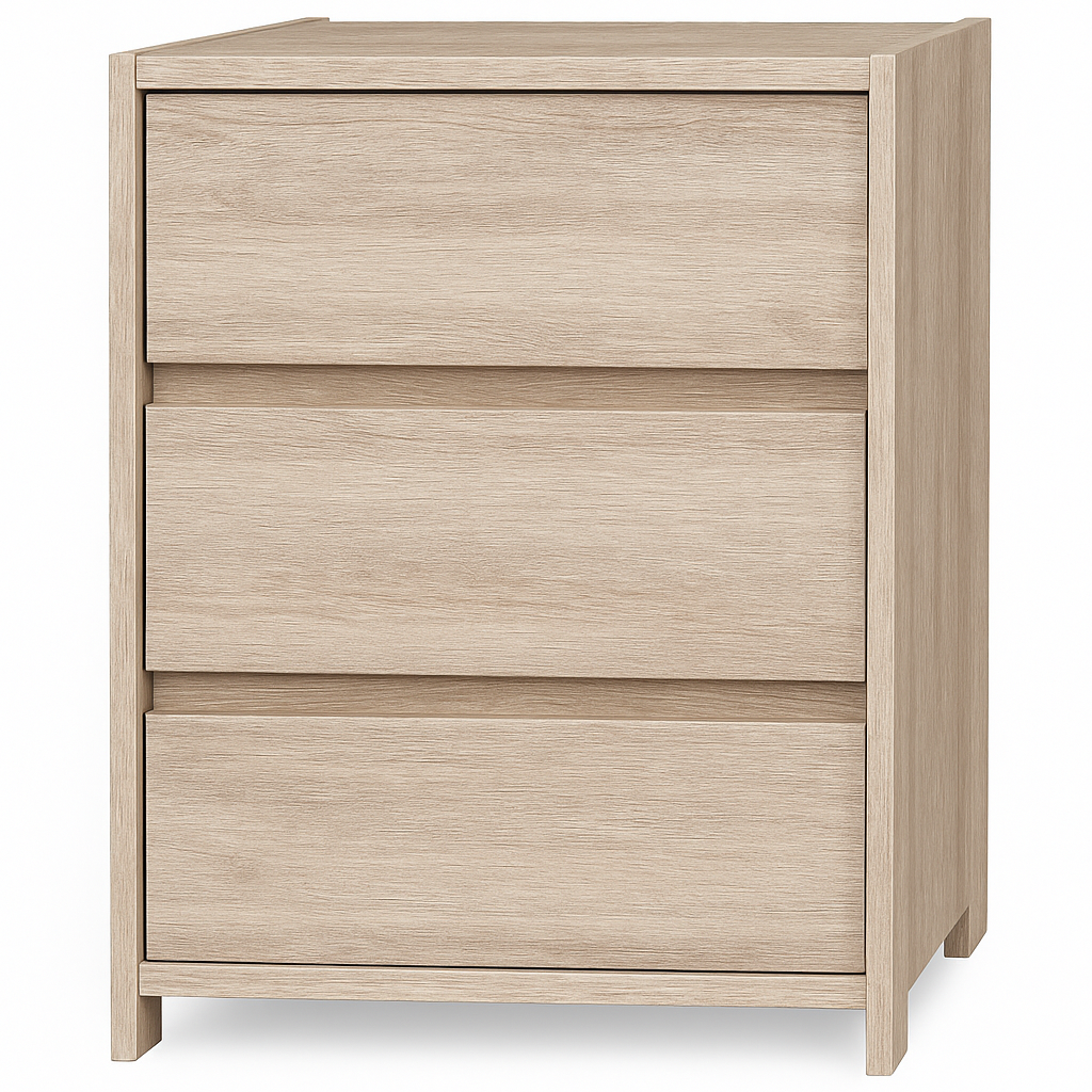 Sus tres cajones amplios permiten mantener el orden sin resignar estética, siendo perfecta para ambientes contemporáneos o minimalistas.