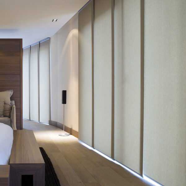 Los Paneles Orientales Drapeggi son una de las soluciones más elegantes y funcionales para cubrir grandes ventanales, puertas balcón y aberturas de piso a techo.